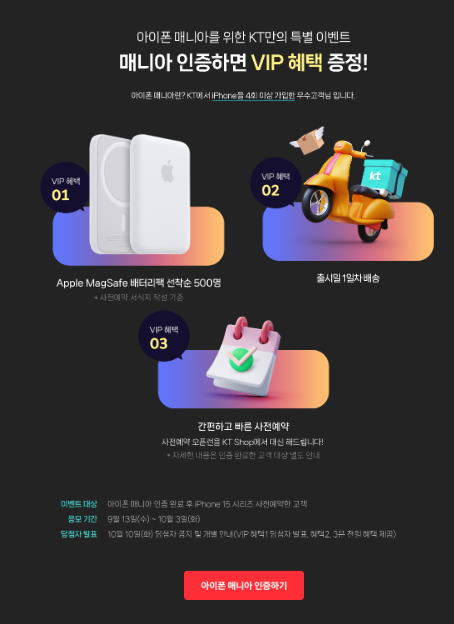 아이폰15가 공개된 지 10일 정도 지났습니다. 혁신이라는 단어에 목메이던 사람들에게는 혁신적으로 보이지 않으실 수 있겠지만, 아이폰15를 기다리던 많은 사람들에게는 가격동결, USB-C포트, 티타늄소재 라는 것만으로도 굉장히 혁신적이란 생각이 들 것입니다. 이런 아이폰15 의 스펙 등이 궁금하신 분들은 별도 포스팅에서 설명하고 있으니, 아래 링크를 통해 확인해보시길 추천하며, 이번 글에서는 사전 예약 알림을 진행하는 사이트의 혜택들을 비교하여 알려드리겠습니다.